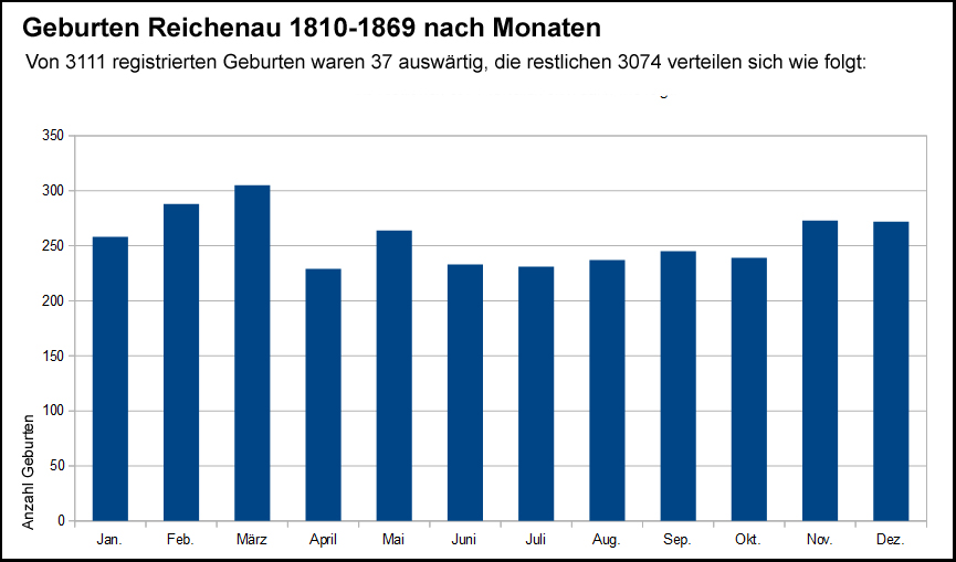 Registriert wurden 3111 Geburten, davon waren 348 (11,19 %) zunächst unehelich, von denen einige später legitimiert wurden.